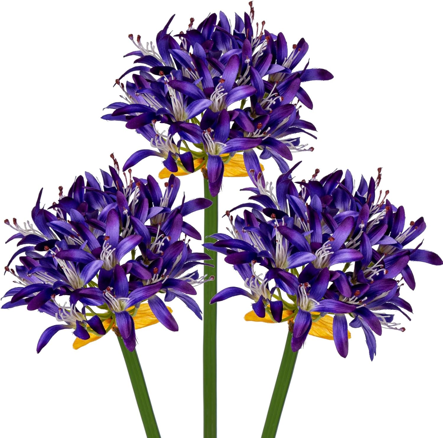Hollyone 6.7″ Large Artificial African Agapanthus with Long Stem, 3PCS Dark Purple Fake African Lily Flower Picks Faux Floral Arrangements for DIY, Home Decor, Party, Wedding, Living Room Decorations