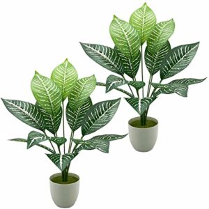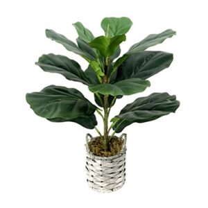 Artificial Mini Small Fiddle Leaf Fig Tree Faux Fake Tree in Woven Pot for Indoor Decor 22 Inch Green-1 Pack
