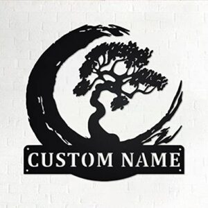 MiKiBi-77 Personalized Bonsai Tree Name Logo Customizable Bonsai Tree Metal Wall Art Decor Room Bonsai Tree Metal Home Decor