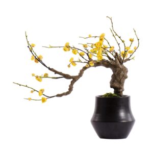 Artificial Bonsai Tree Yellow Plum Blossom Bonsai Silk Tree Artificial Bonsai Tree Home Decoration Faux Plants for Indoor Book Shelf Room Decor Artificial Tree bookends