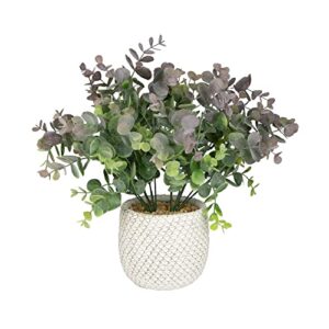 Unique Artificial Eucalyptus Fake Plant Mulberry in Contemporary White Geometric Pot 30cm – Small Faux Eucalyptus Plant Indoor – Set your Home Apart from the Rest with Decorative Artificial Flora