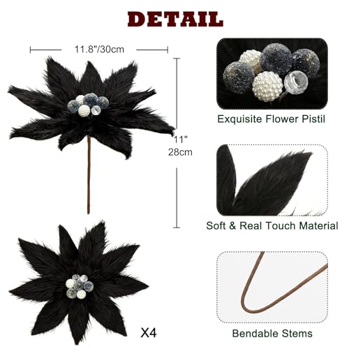 - Luxurious Texture: These 4PCS plush Christmas flowers for decoration measure 11.8”/30cm in diameter with an 11”/28cm stem. They are exquisitely crafted with a fluffy soft texture that adds a touch of opulence to your holiday decor. Their plush petals and bendable stems create a sense of coziness and warmth in any space.