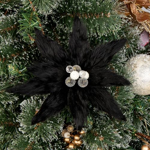 - Versatile Decor: The stamen of our fluffy Christmas flowers are made up of pearls of different chic materials. Whether you want to adorn your Christmas tree, Xmas wreath, garland, or table centerpiece, these fake plush poinsettia flowers are suitable. They also make fantastic additions to gift wrapping or as decorative accents on stockings and mantels.