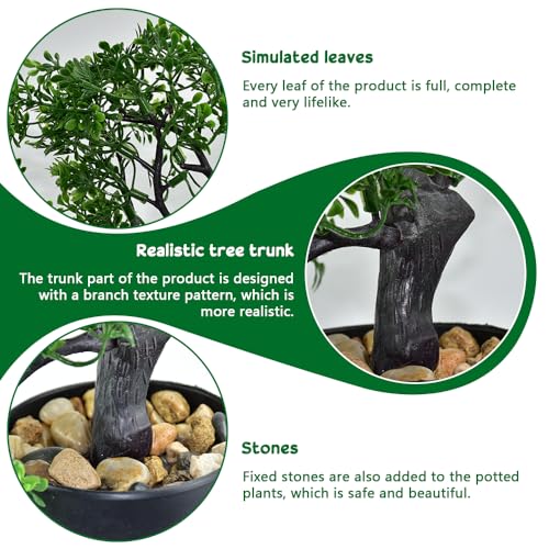 - [Suitable for many places] High quality artificial bonsai. The roots, trunks, branches and leaves look realistic and the meticulous workmanship is stunning. Whether it is home decoration, commercial places, offices, hotels, exhibitions, etc., it can add a green and natural feeling to the environment.