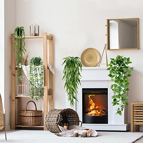 - [REALISTIC APPEARANCE]: The fake potted hanging greenery has 100% lifelike reduction in shape and color with clear leaf veins. Our special making processing makes it more vivid, will not wilt and fade, just like the real one.