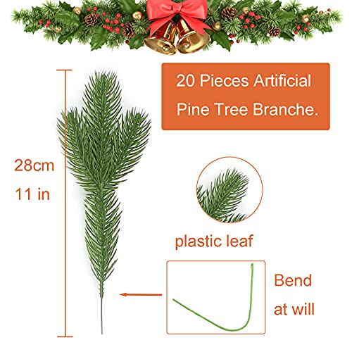 【Faux Pine Branches】20 Pieces of YUNSTK artificial pine tree branches, you can wrap them around the window, the door, or hang them on the ceiling, the vase, the wall, the tree, and any place you want to decorate.
